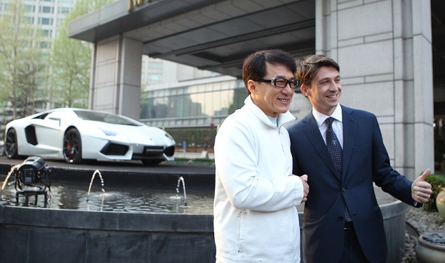Իտալական սպորտային մեքենաներ արտադրող Lamborghini ընկերության նախագահը հրաշալի անակնկալ մատուցեց Ջեքի Չանին իր տարեդարձի կապակցությամբ, նվիրելով անվանական Lamborghini Aventador Jackie Chan Edition սուպերքարը: Այն սովորական Aventador-ից տարբերվում է իր ինտերիերի